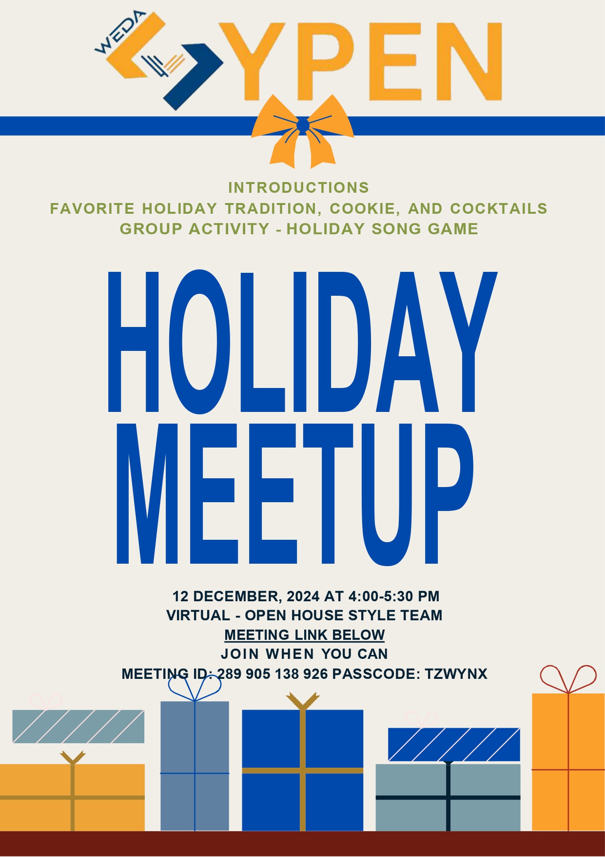 So what could be better than a Holiday (Virtual) Meetup! Please join us, or share this fun opportunity with someone who could benefit from getting to know our YPEN group. Have some fun while being a part of the next generation of economic developers making a difference in Wisconsin.